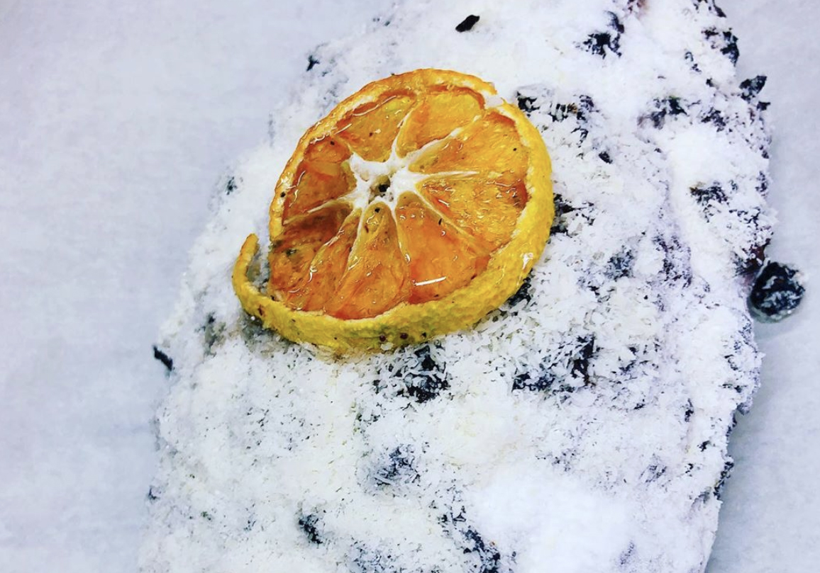 メロンのクッキー生地に米粉を加えることでサックリとした食感が味わえます。